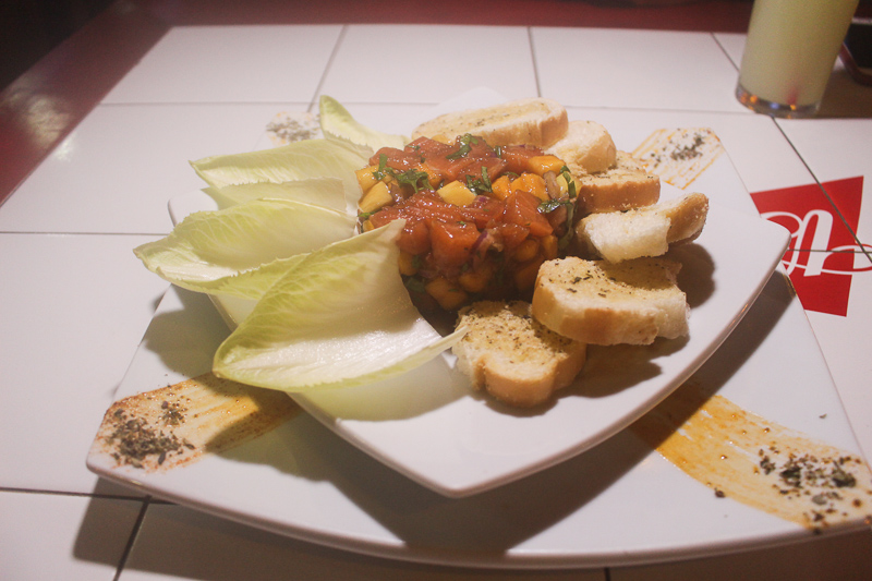 Começamos pedindo de entrada o Ceviche de Salmão com Manga, que estava uma delícia. A porção serviu para duas pessoas como entradinha.