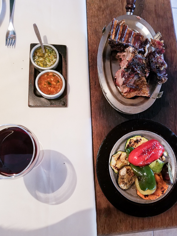 O La Tablita fica no início da Avenida Del Libertador, na verdade não é exatamente na avenida, é numa ruazinha transversal, porém quase na esquina dela. Ele é bem espaçoso, conta com uma decoração rústica e serve o cordeiro ao estilo patagônico, assado no fogo de chão.