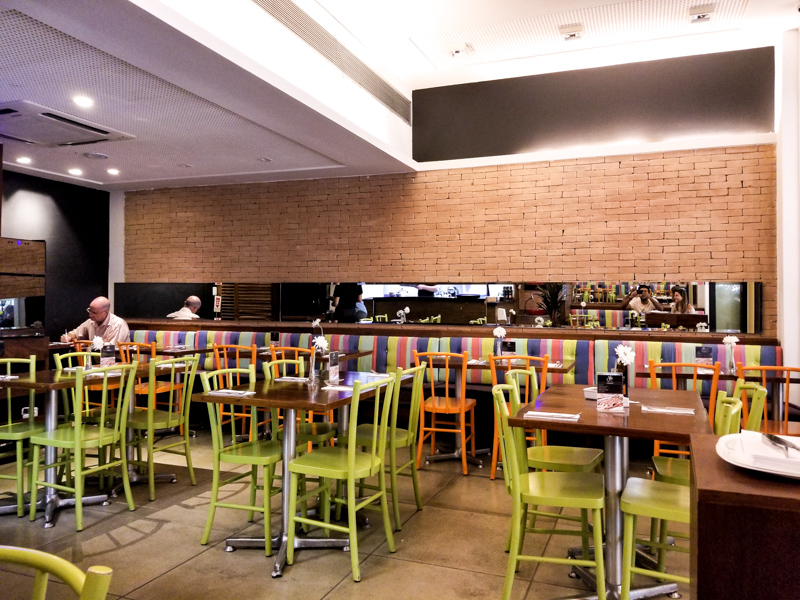 O espaço é amplo e as mesas não ficam coladas umas nas outras, tornado o restaurante bem aconchegante.