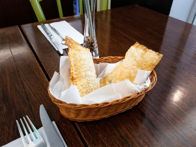 Em seguida começamos pedindo de entrada a porção com 4 Pastelzinhos Gourmet por R$24,00 com recheios de Camarão, Brie com Damasco ou Gorgonzola. Os pastéis chegaram quentinhos, sequinhos e crocantes a nossa mesa, estavam bem saborosos, curtimos.