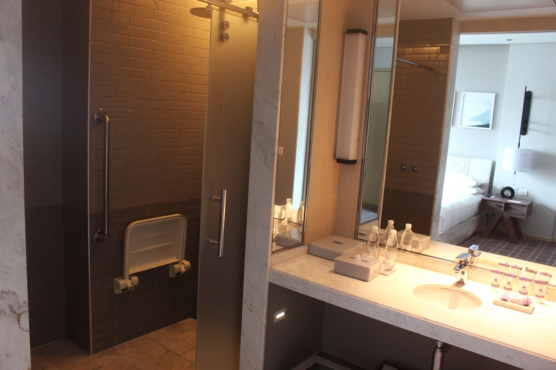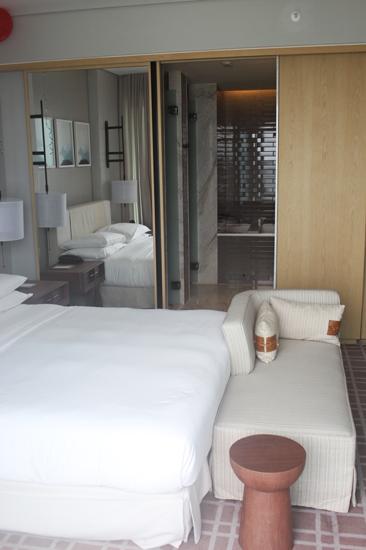 Fomos convidados a experimentar o pacote romance do Grand Hyatt. Por R$787,00 (mais taxas), o casal tem direito a hospedagem para duas pessoas em apartamento com vista para o mar (mediante disponibilidade), mimos como espumante, flores, morangos, café da manhã no quarto ou no Restaurante Tano e late checkout até às 18 horas. Ainda fomos contemplados com acesso ao Grand Club Lounge, um lounge exclusivo para categoria Grand Club, que oferece coquetel todos os dias com bebidas alcoólicas, frios, antepastos e serve também como local exclusivo para café da manhã com vista para Lagoa de Marapendi ou Oceano Atlântico. Custa U$$65,00 por dia caso não esteja hospedado em um dos quartos da categoria.