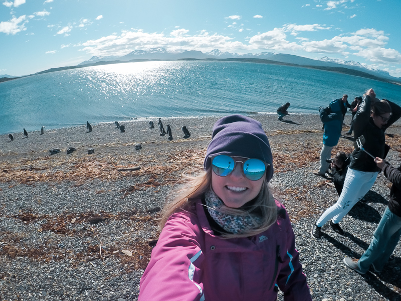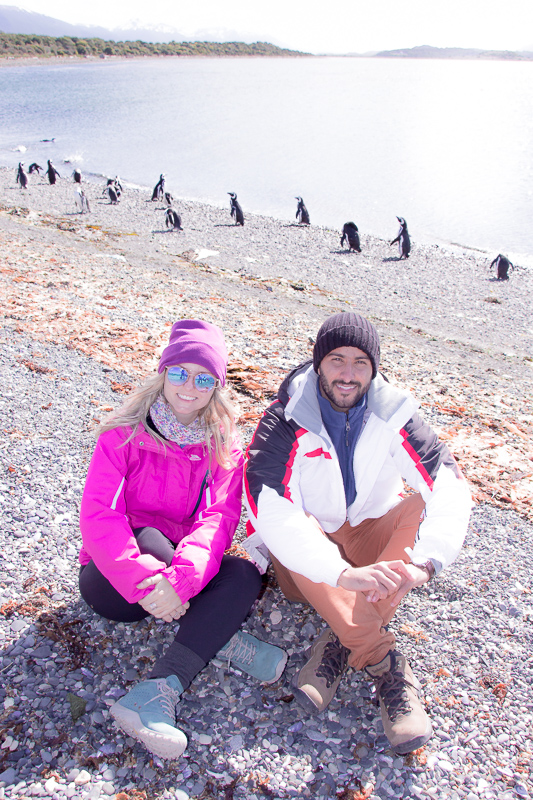 A caminhada dura cerca de 1 hora, um pouco mais as vezes, como em nosso caso. E posso contar para vocês que é algo incrível. A conexão tão próxima com eles é sensacional, eles são fofos, engraçados, desengonçados e lindos! E são muitos, muitos mesmo. Durante o período que eles estão por lá é possível avistar até 10 mil pinguins na ilha.