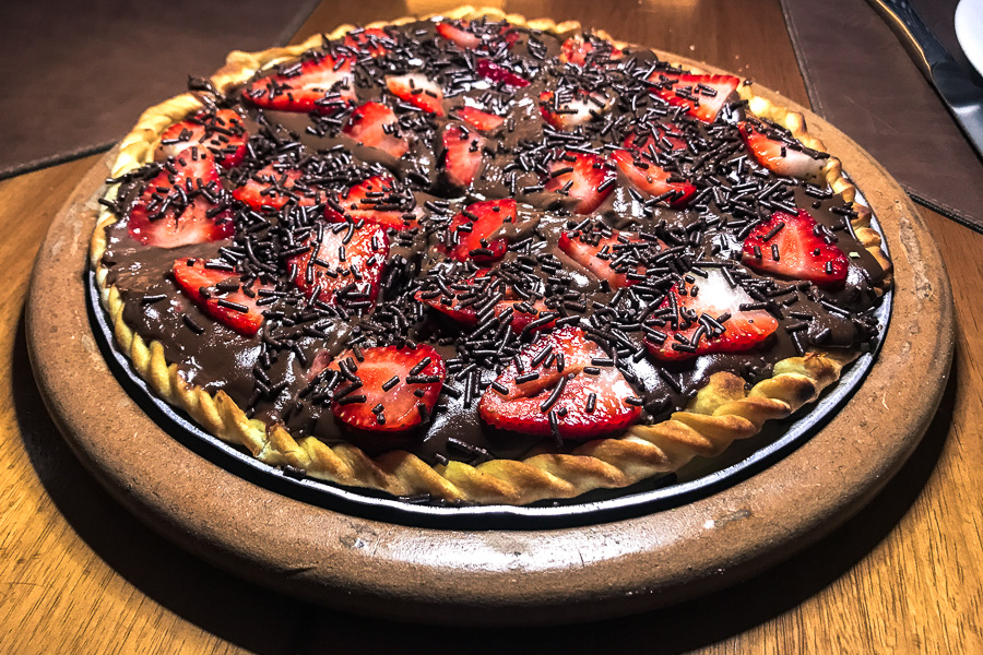 Por fim, para a sobremesa escolhemos a pizza de chocolate com morango, tamanho individual (R$62,00).