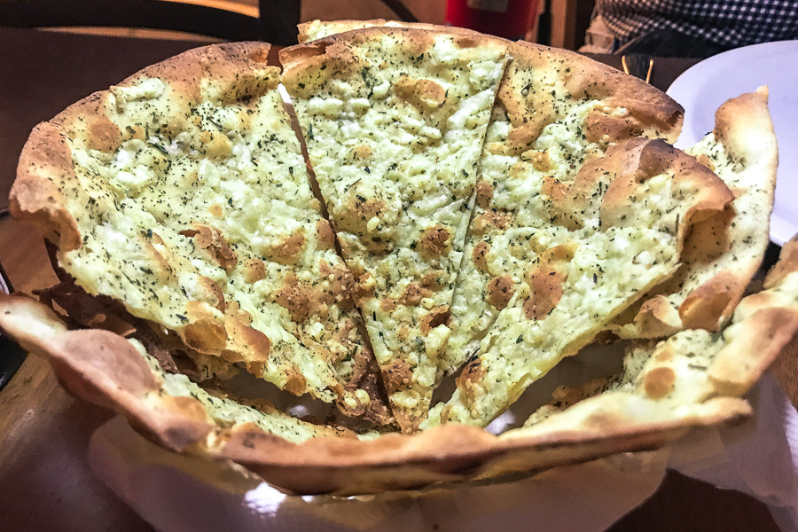 Em primeiro lugar pedimos uma das entradinhas que mais curtimos entre as pizzarias da cidade: a Casquinha de Pizza. Dessa vez pedimos de Ervas e Parmesão (R$29,00). Um vício! Bem servida e muito saborosa.