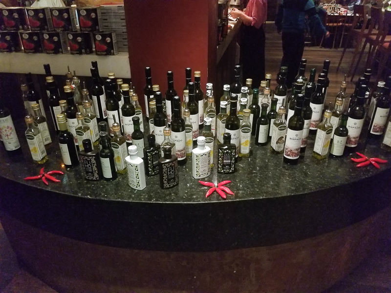 Outro ponto que curti bastante foi a seleção de azeites. Eles ficam em uma mesa logo na entrada a disposição dos clientes, é escolher e levar para mesa (ou pedir ao garçom). Bem legal essa experiência.