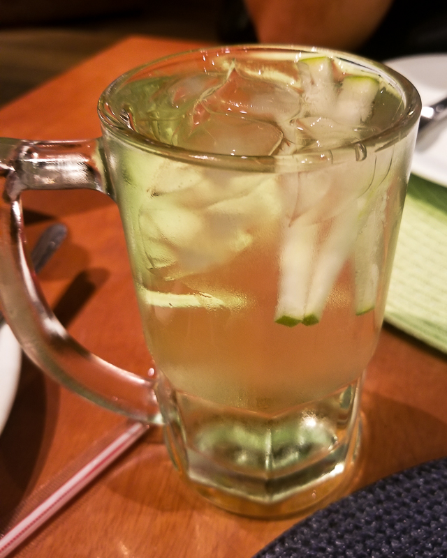 Entre uma pizza e outra provamos algumas bebidas da casa. Pedimos o Chá gelado de Framboesa com Tangerina (R$9,00) e a Soda Italiana de Maçã Verde (R$10,00). O chá estava bem saboroso, já a soda não agradou meu paladar, mas é uma opção diferente.