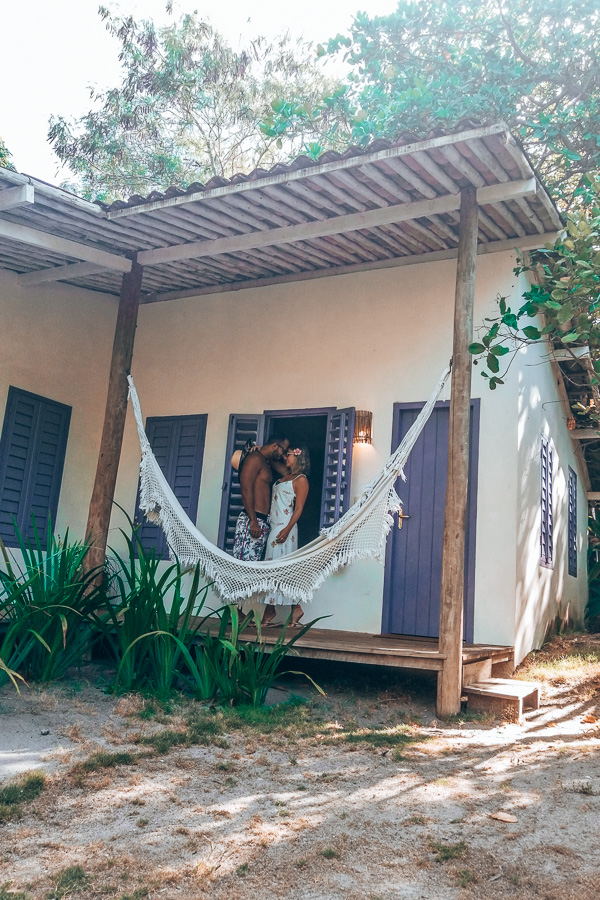 Em relação as comodidades, no nosso bangalô (o Bangalô Lilás) tínhamos frigobar, ar-condicionado, banheiro e varanda com rede.