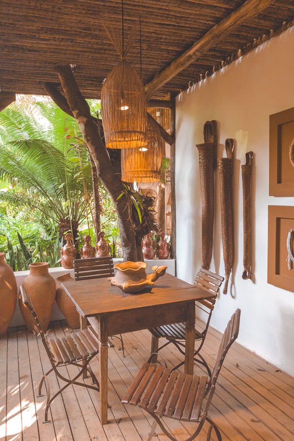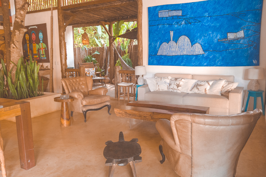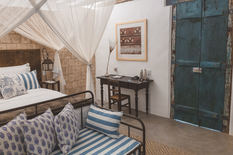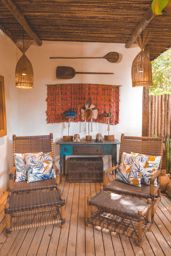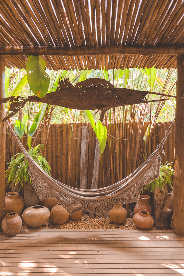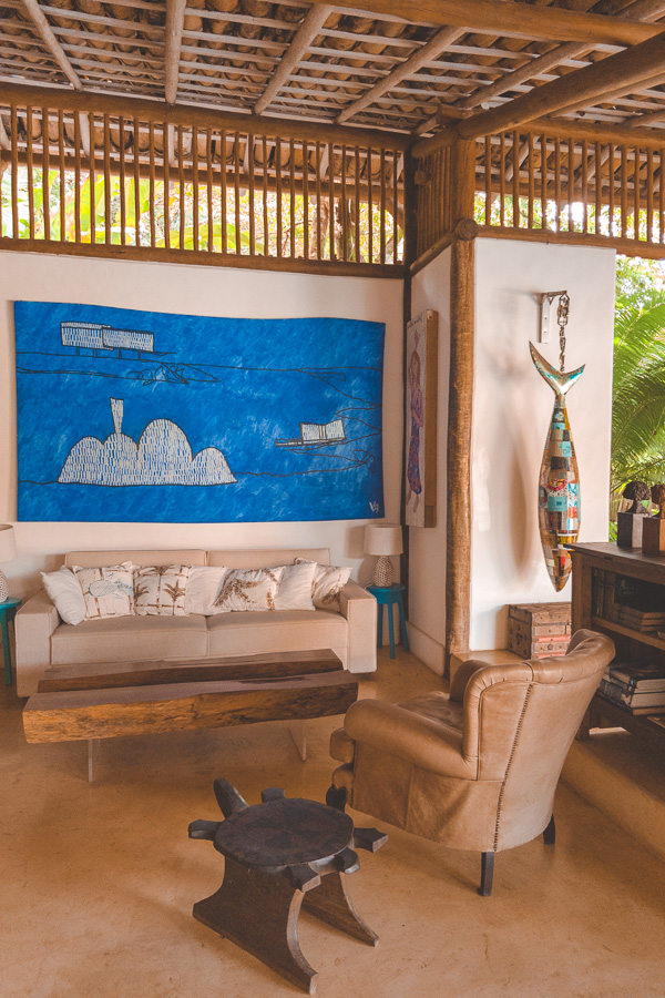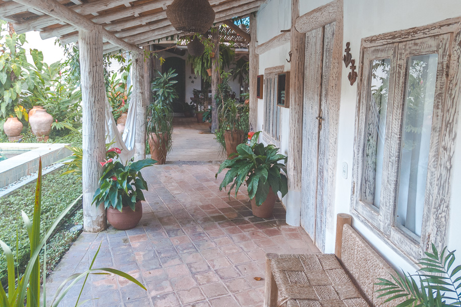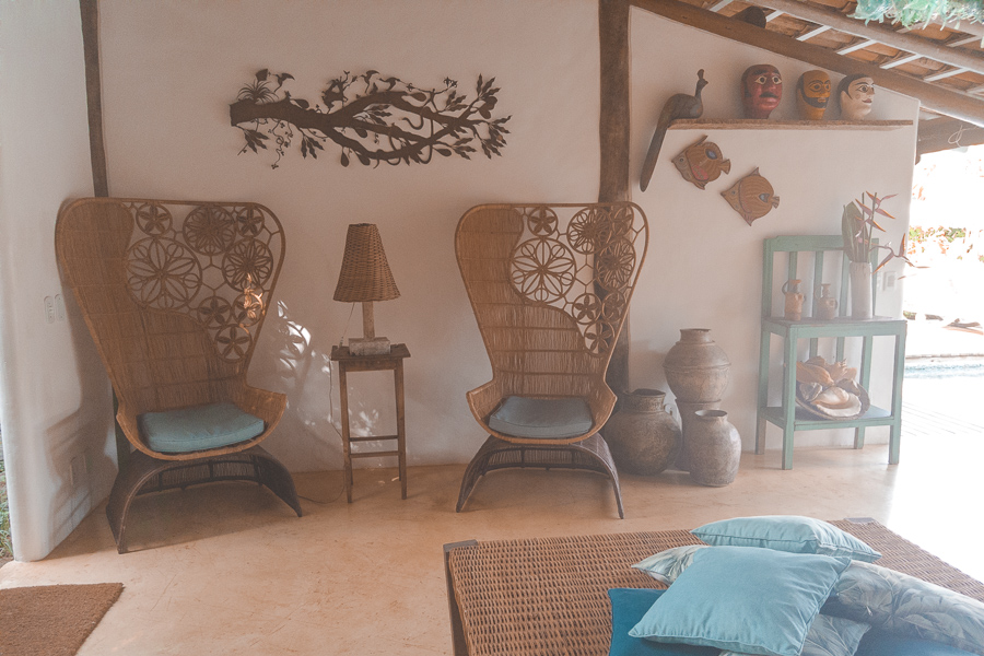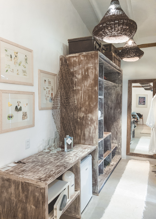 São apenas 4 suítes e 1 bangalô na pousada. Nós ficamos na Suíte Marimbá, que com 53m² é muito espaçosa. Ao entrar você parece ser transportado para aquelas fazendas do interior da Bahia, um charme só.