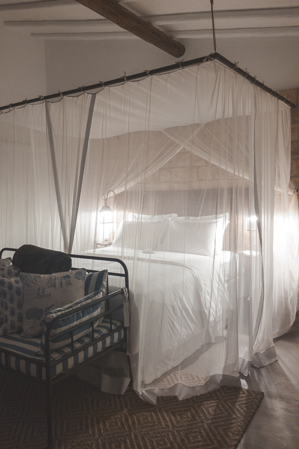 Uma cama box tamanho queen, com mosquiteiro e roupas de cama da marca de luxo Trussardi o farão dormir tão bem que será difícil levantar dali. Tons azuis e branco além de anunciarem o casamento perfeito com a região transmitem paz e tranquilidade. As madeiras, sustentáveis (palavra de ordem na Casa de Perainda), marcam forte presença e contribuem ainda para tornar o ambiente aconchegante e rústico ao mesmo tempo. Um luxo descomplicado, direto ao ponto, com materiais de altíssima qualidade aliado a um serviço impecável. Como achamos que deve ser.