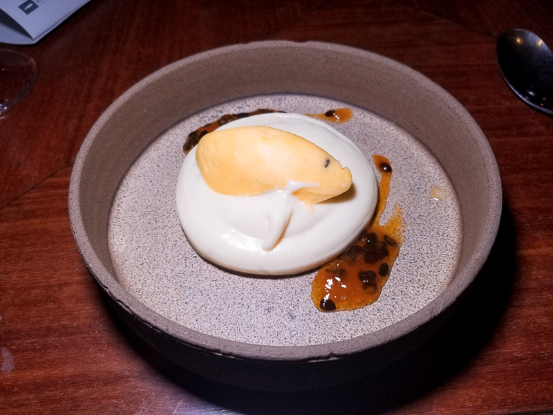 Chocolate Branco | Sorvete de Maracujá do chef Gustavo. Um creme de chocolate branco com textura surreal de boa, impossível parar de comer! E o sorvete de maracujá contrastando com o doce ?! Perfeito! Muito boa também.