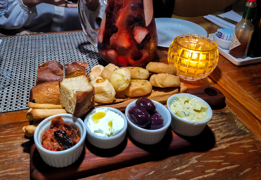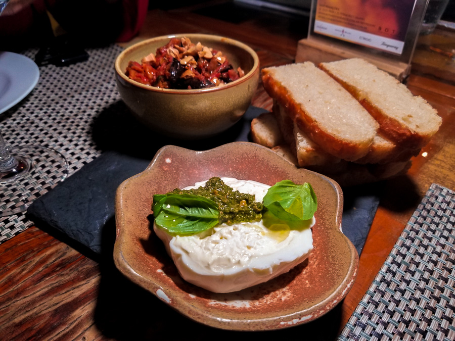 Iniciamos os trabalhos com o Couvert Fatto a Mano, 100% artesanal. No couvert você encontrará delícias como pães artesanais quentinhos, queijo de cabra, queijo boursin orgânico, azeitonas etc. Custa R$34,00.