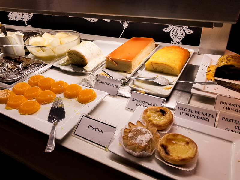 Nós decidimos montar um prato com um pouco de cada para experimentar e estavam deliciosas. Destaque para o estrogonofe de brigadeiro, a Siricaia (leite condensado com ovos e canela), os Ovos Moles e a Encharcada de Ovos. Só de lembrar já da água na boca.
