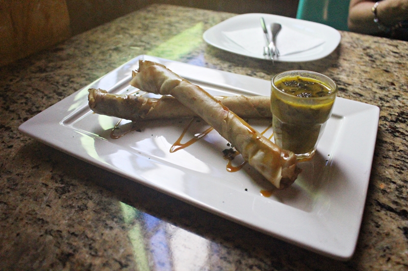 Começamos com os Charutos de Pato ao Tucupi, uma leitura do clássico amazônico “Pato ao Tucupi”. O peito de pato é desfiado e refogado com jambu (a verdura que adormece os lábios!) e cebola, enrolado e frito em massa de arroz, servido com tucupi reduzido. Precisamos antes dizer para se acostumarem aos elogios a esse restaurante. Dito isso, essa entrada é deliciosa, crocante, suculenta, cheia de informação e bem servida.