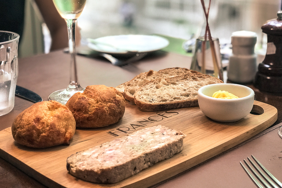 Antes tudo provamos o novo couvert, que agora vem com pão de fermentação natural, patê campanha (um dos mais tradicionais da França), gougère (pão de queijo francês feito com queijo gruyère) e manteiga de flor de sal. De fato, esse couvert traz elementos que remetem instantaneamente a França, além disso o preparo e apresentação estavam excelentes. Custa R$19,00.