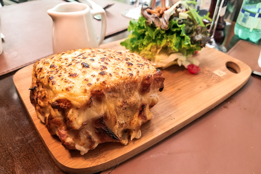 Antes do prato principal resolvemos provar, da nova seção dos sandubas, o Croque Monsieur, tradiconal saduíche francês feito com presunto, queijo gruyére, molho bechamel e mais queijo gratinado envolta. Em resumo: maravilhoso! Apesar de ser um sanduba é muito bem servido, podendo ser uma refeição tranquilamente.
