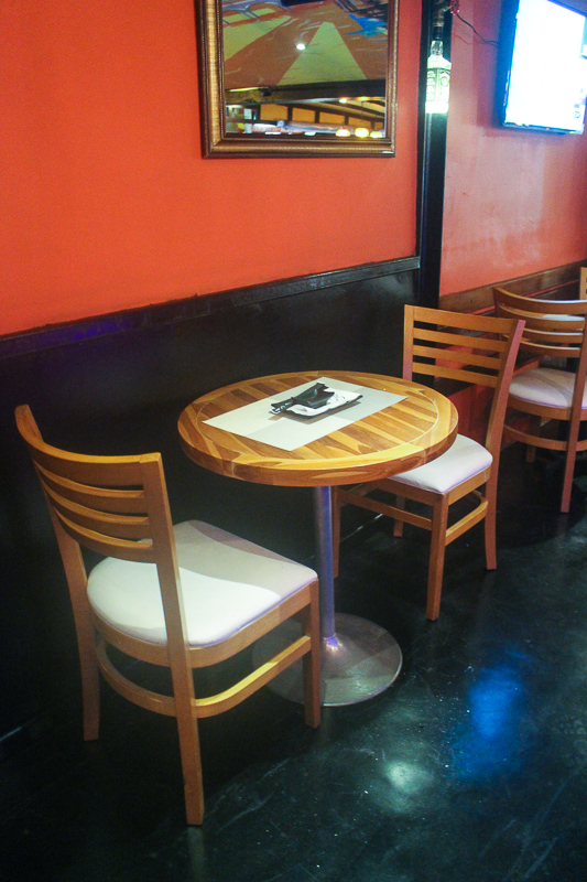 Nos sentamos em uma mesa para duas pessoas dentro do restaurante, mas é possível sentar-se na calçada de frente para a badalada Rua das Pedras também.