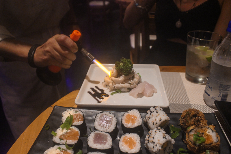 Experimentamos também os ceviches da casa, preparados pela chef em nossa mesa, uma experiência bem legal. Somos fãs de ceviche e ambos (salmão e peixe branco) estavam muito bons.