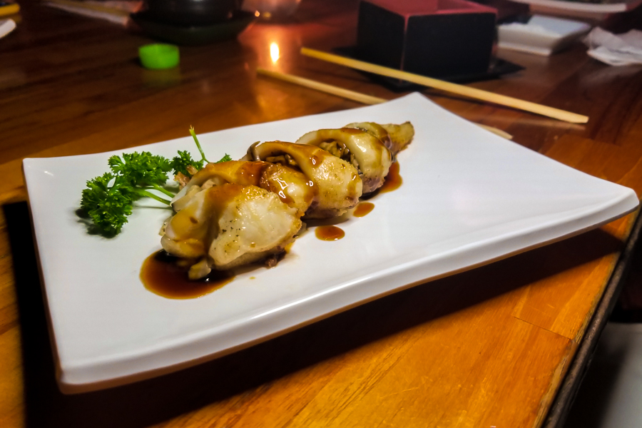 Antes dos principais, ainda provamos uma Lula Recheada com Shitake e Queijo de Búfala que é campeã de pedidos (R$78) e um Shitake recheado com salmão cru (R$49) que surpreendeu também, positivamente é claro.
