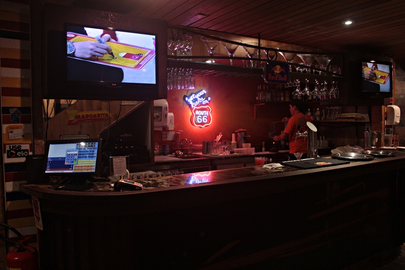 O restaurante tem um clima mais informal e bem descontraído com decoração muito legal lembrando a famosa estrada e objetos texanos e mexicanos.
