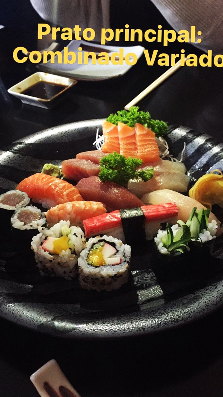Combinado Variado – São 18 peças variadas do cardápio, ótima opção para quem está com mais fome, vem muito bem servido e o frescor dos peixes é sensacional. O corte das peças é outro destaque, sendo feito da mesma forma que no Japão.