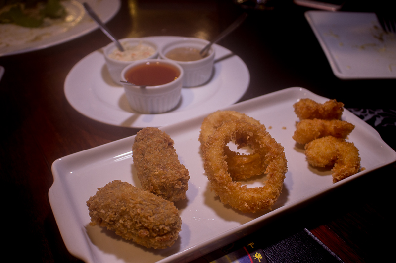 Ainda nas entradinhas, as responsáveis pela Villa Toscana, que são uns amores, nos serviram um seleção de petiscos em tamanho reduzido para conseguirmos provar tudo. Experimentamos o Croquete de Carne Suína apimentado (R$25,90, 6 unid.), a Lula Crispy (R$45,90 a porção) e o Camarão Crispy (R$72,90 a porção), todos empanados na farinha Panko, o que dá um crocante sem igual ao petisco. Deliciosos, pedida acertada. Percebem que você pode ir a Villa para qualquer ocasião ? Podem ir comer um petisco e tomar um vinho ou cerveja por exemplo. Mara!