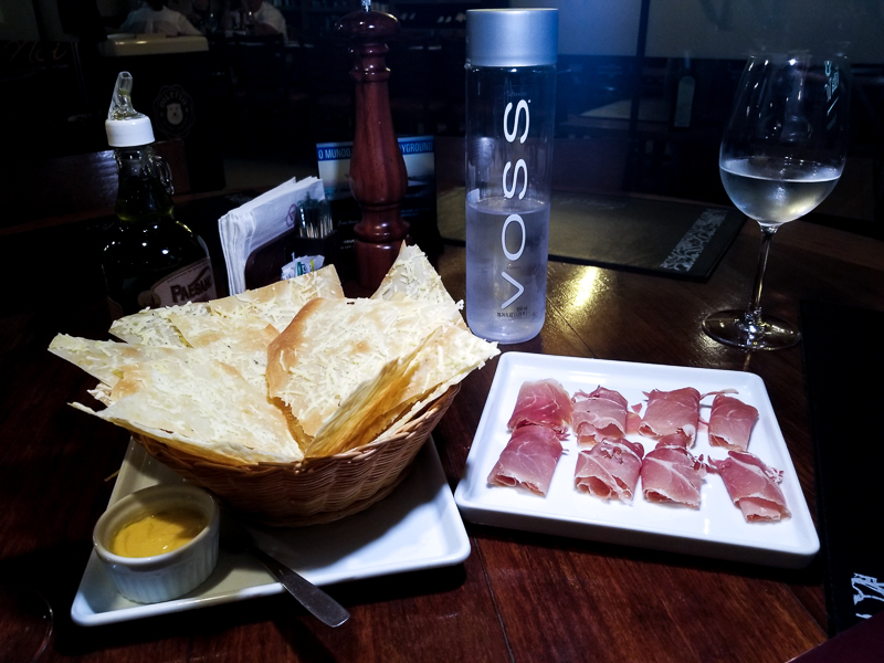 Começamos o jantar experimentando a Pizza Branca (R$12,90) da casa e uma porção de Jamón Serrano. A pizza branca estava ótima, bem crocante e o Jamón também, de ótima qualidade. Ali já sentimos que o jantar seria incrível.