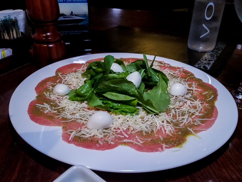 Em seguida chegou o Carpaccio de Carne Especial (R$39,90) que vem com muçarela de búfula, molho especial da casa, rúcula e parmesão. Nossa, esse carpaccio estava muito bom! Estão de parabéns.
