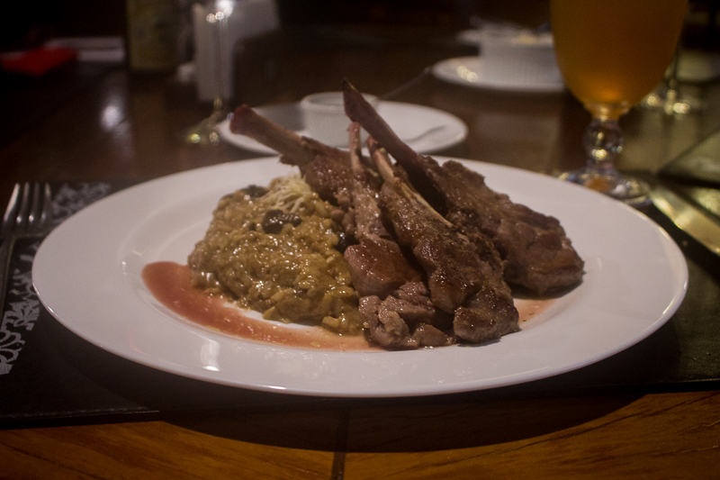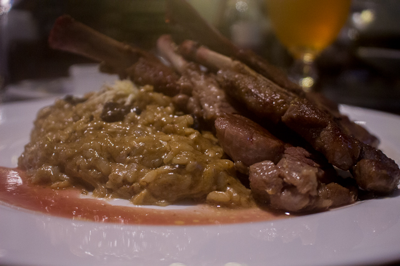 As costeletas de cordeiro chegaram no ponto correto, assim como o risoto. Vale destacar que o prato é muito bem servido gente. O cordeiro estava uma delícia e a geleia de hortelã que acompanhava caiu muito bem, adorei (Thiago).