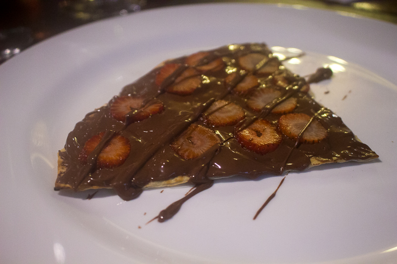 Na hora da sobremesa já estávamos bem satisfeitos. Mas ao ver o que nos esperava não conseguimos resistir. Pedimos a Mini Torta Choconata (R$13,90), que não é tão mini assim e é feita com massa de chocolate, chantili e calda de chocolate meio amargo. Massa fofinha e recheio gostoso, muito boa a tortinha. E provamos também uma fatia da Pizza de Morango com Nutella (R$45,90 a pizza inteira) que foi super recomendada. Ainda bem que aceitamos a sugestão, pois a pizza estava muito boa, e somos chatos para avaliar pizza doce ein. Mas essa podem pedir sem medo de errar!